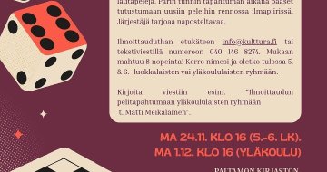 20.11.2025 kello 17 alkaen verkossa ja Kontiomäen koululla.