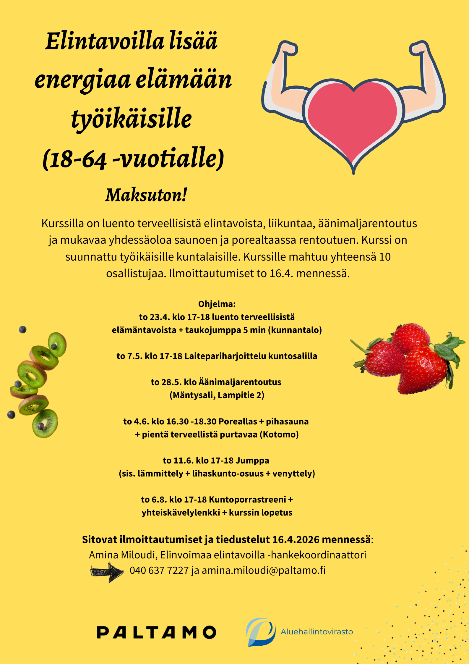 Elintavoilla lisää energiaa elämään -kurssi alkaa 23.4.2026. Katso lisätiedot täältä.